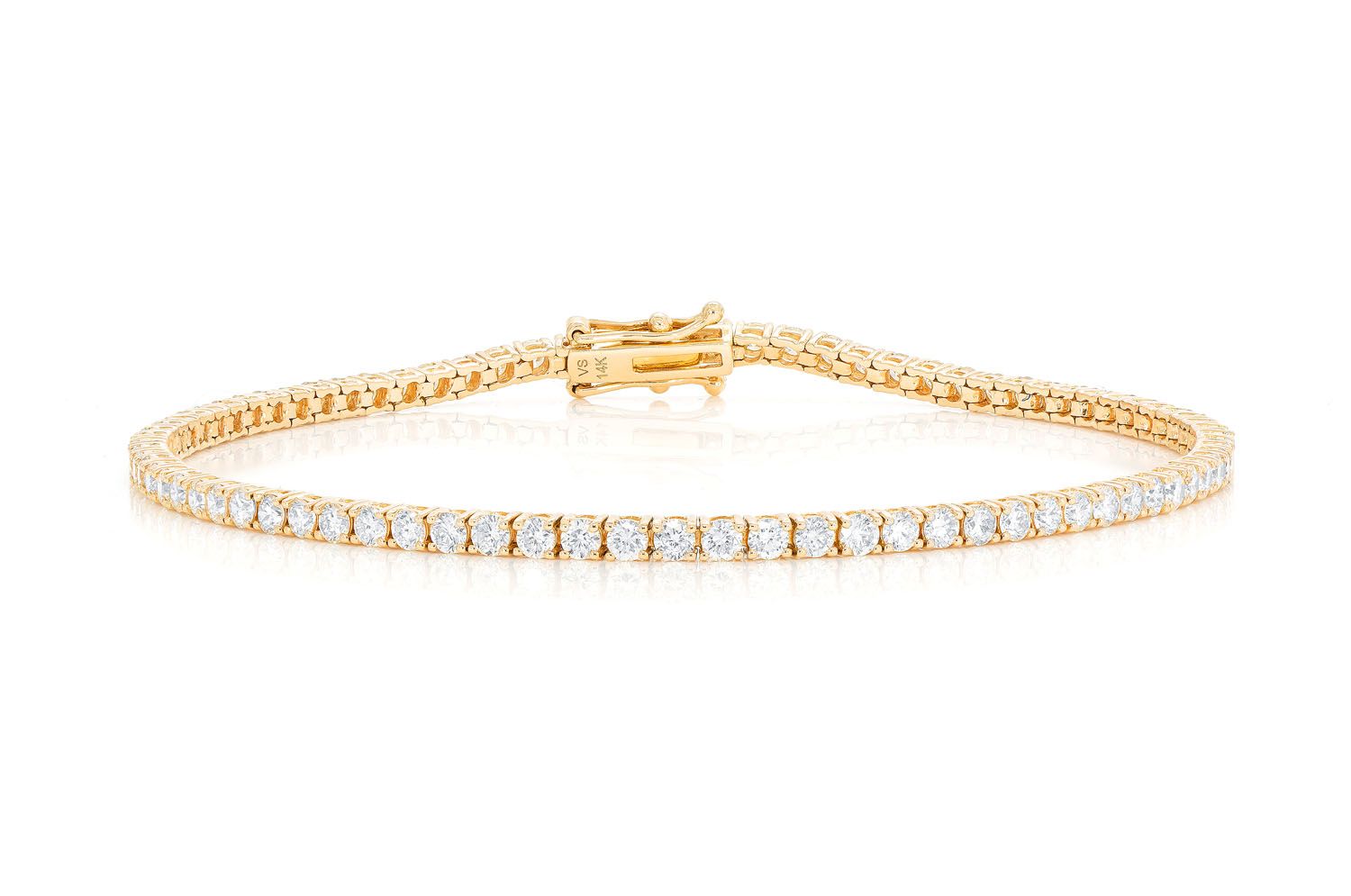 This 6pt Prong Set Tennis Bracelet is made of 14K Yellow gold with 4.60ctw of diamonds._x000D_Treat yourself or someone special to this genuinely exquisite diamond tennis bracelet.Brimming with 4.60ctw of sparkle and shine
