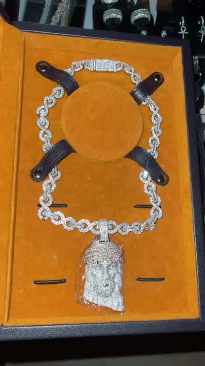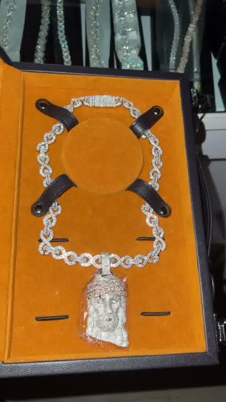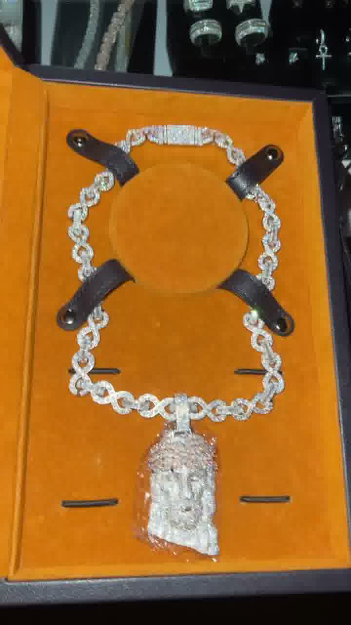 925 Silver Moissanite Diamond Infinity Necklace and Jesus Pendant925 Silver Moissanite Diamond Infinity Necklace and Jesus Pendant