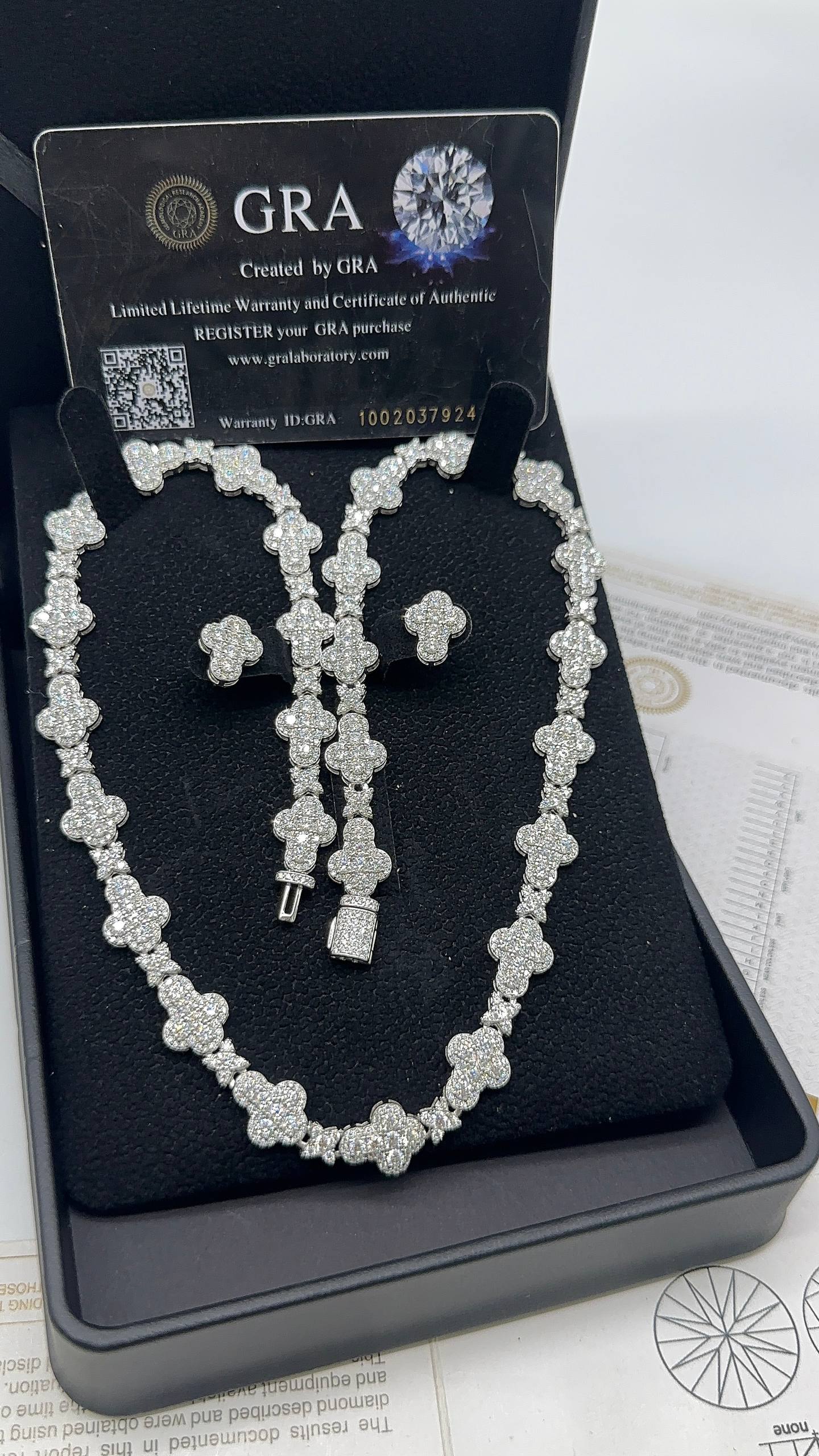 High End vvs1 Moissanite Diamond Crosslink Necklace with Matching Earrings