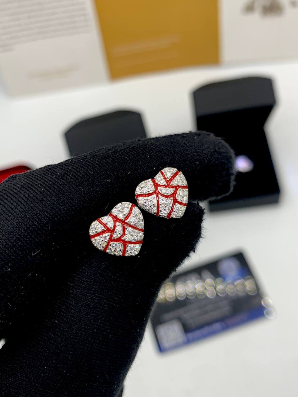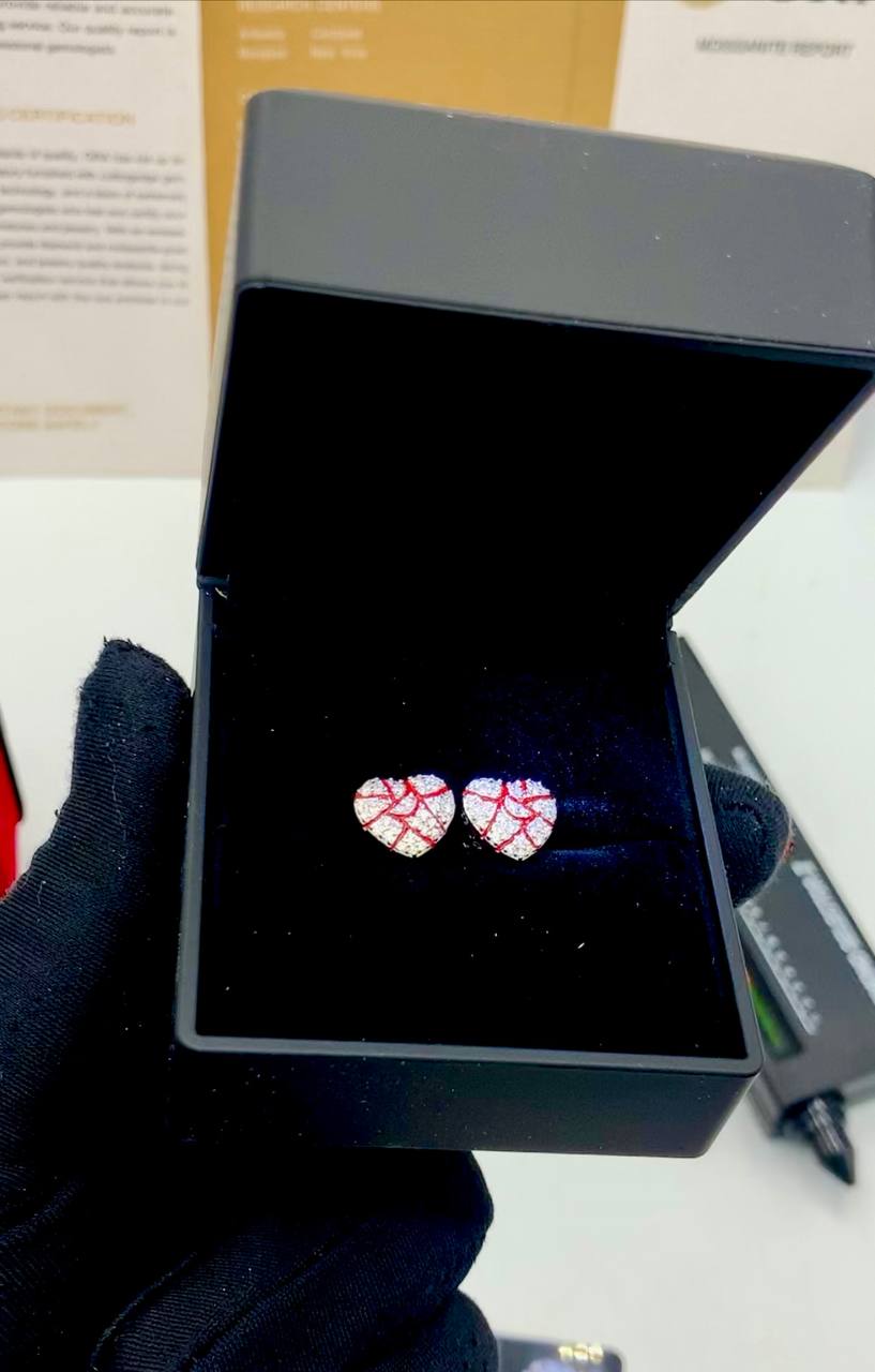 High End Vvs1 moissanite Diamond Heart-shaped stud earrings(white and red mosaic design)